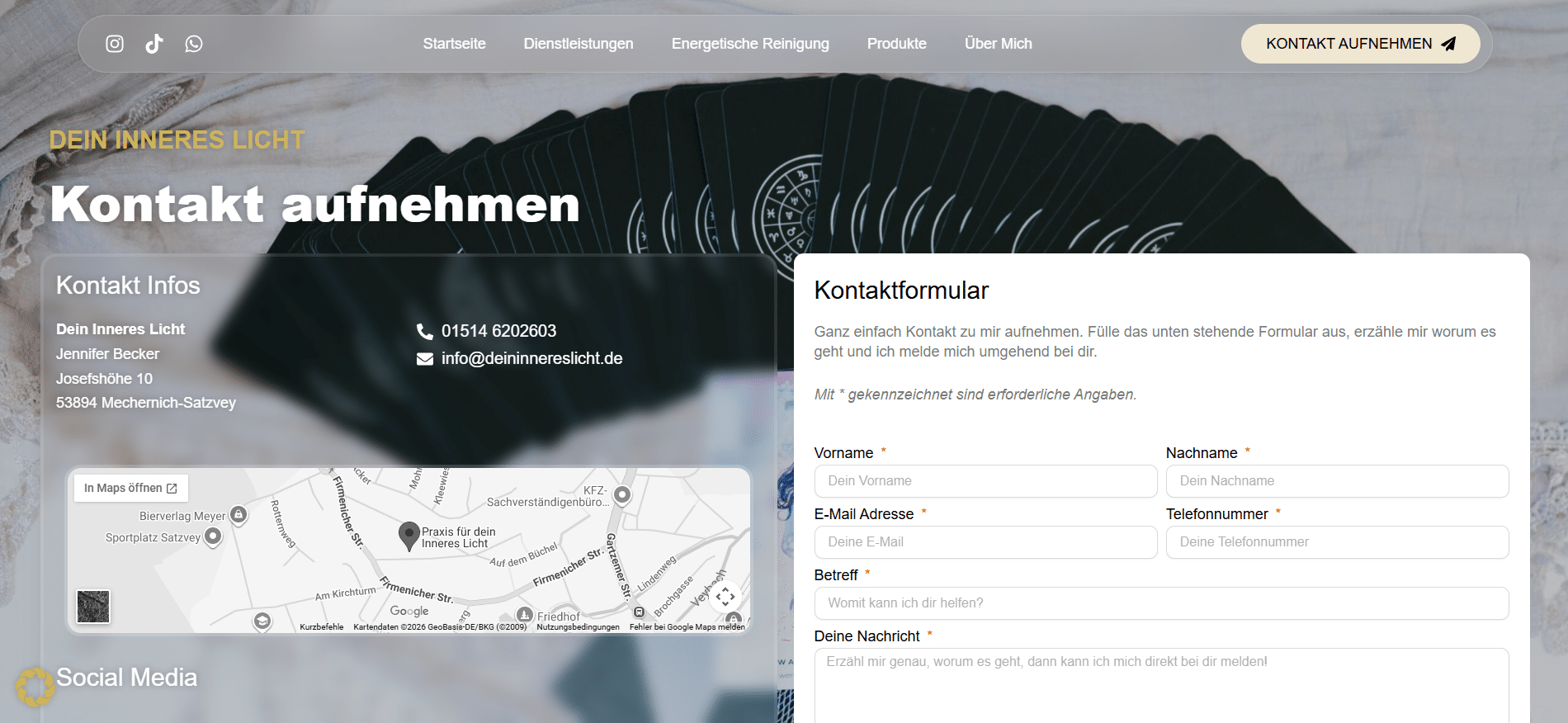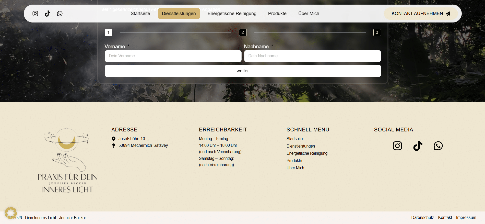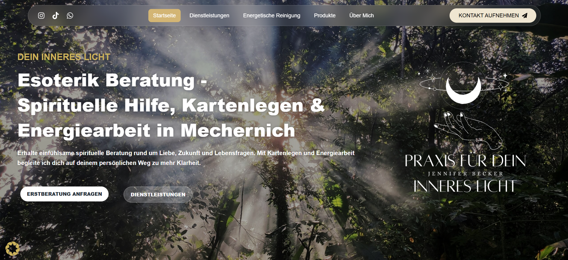Für die Website deininnereslicht.de habe ich ein ruhiges, modernes und zugleich einladendes Webdesign entwickelt, das die Themen Achtsamkeit, persönliche Entwicklung und innere Balance visuell widerspiegelt. Ziel war es, eine Atmosphäre zu schaffen, die Vertrauen ausstrahlt und Besucher direkt emotional anspricht.