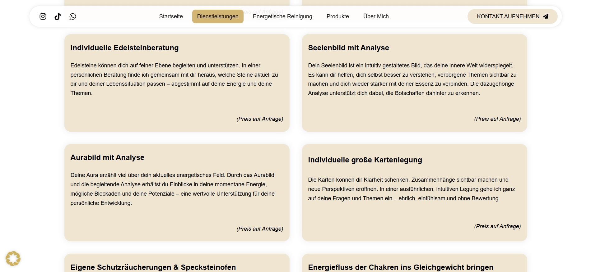 Die Gestaltung ist bewusst klar und harmonisch gehalten, mit sanften Farben, viel Weißraum und einer intuitiven Benutzerführung. Dadurch können sich Nutzer leicht orientieren und sich ganz auf die Inhalte rund um Selbstfindung, Energiearbeit und persönliches Wachstum konzentrieren.