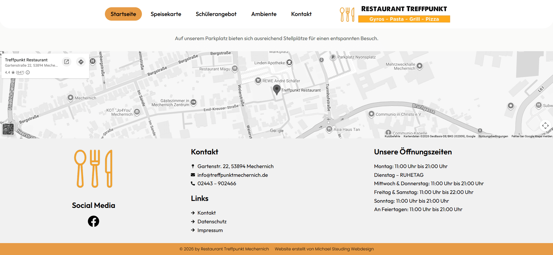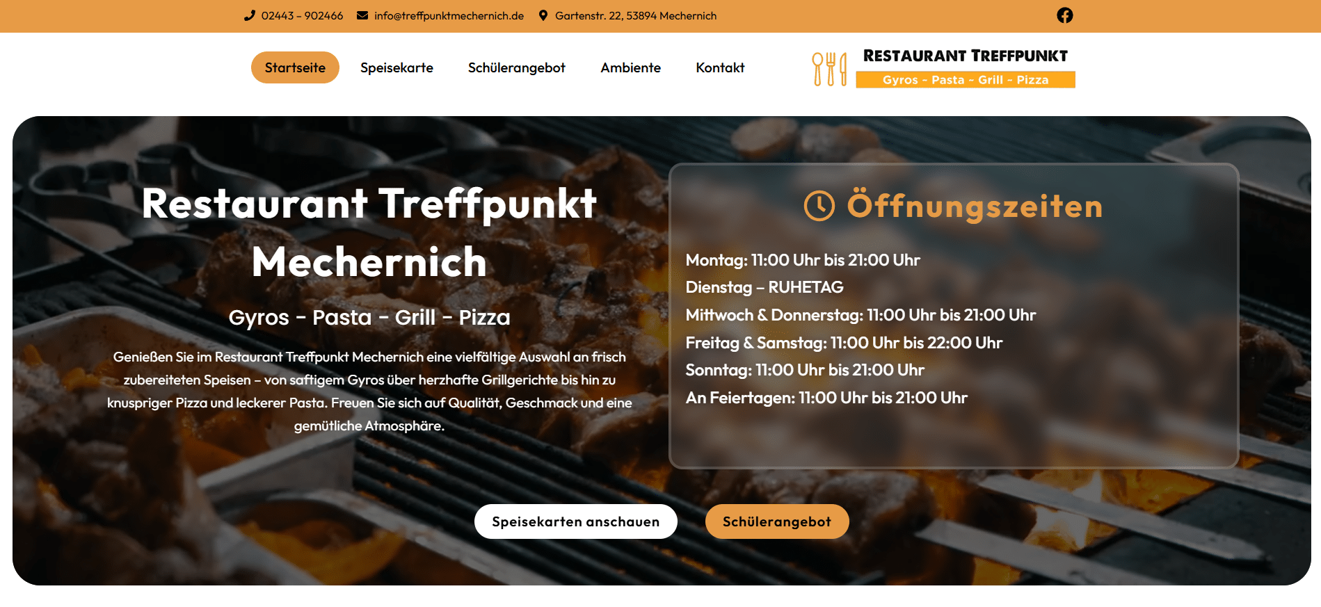 Für das Restaurant Treffpunkt in Mechernich habe ich ein modernes und zugleich stimmungsvolles Webdesign von Grund auf entwickelt, da zuvor keine Website vorhanden war. Ziel des Projekts war es, dem Restaurant eine digitale Präsenz zu geben und dabei den authentischen griechischen Flair visuell erlebbar zu machen.